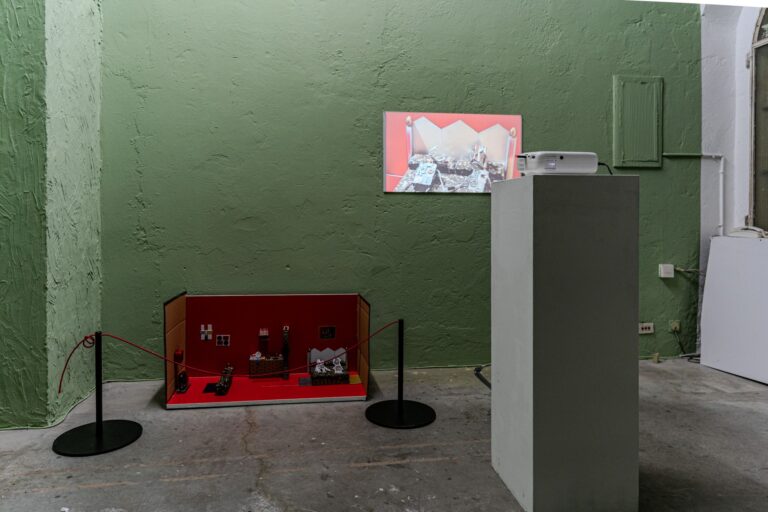 L’installazione di Beatrice Artunghi, composta da una videoanimazione e da un gruppo di oggetti “artigianali” realizzati a mano, riflette con tono allo stesso tempo macabro e ironico sull’idea di ferita e di riparazione, in un ciclo continuo che alterna aggressività e dolcezza, pericolo e rassicurazione.