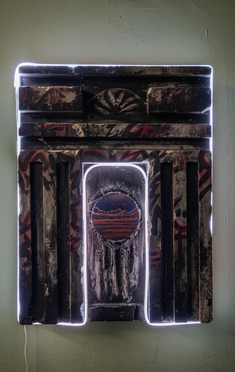 Il dialogo tra epoche diverse viene evocato anche dall’opera di Roberto Venturini, che realizza una sorta di reperto archeologico del futuro. La facciata
